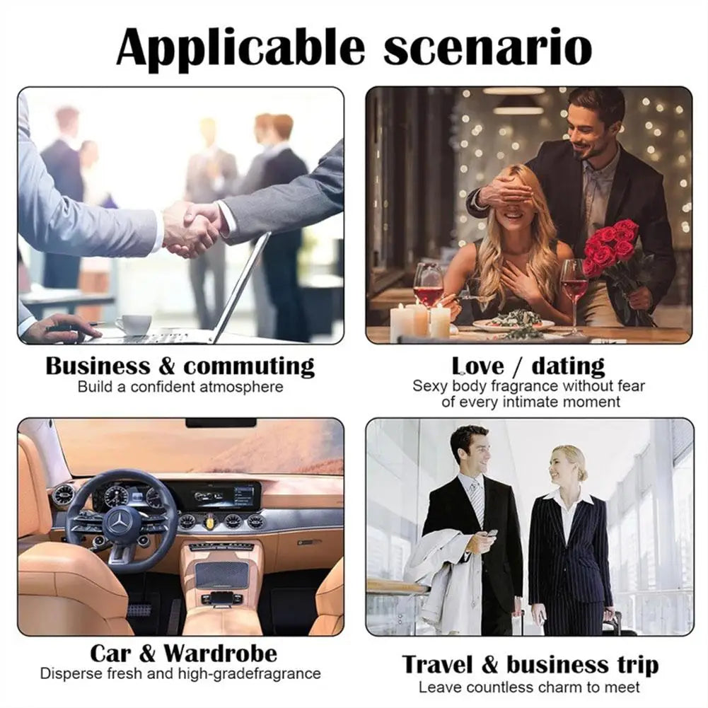 Indulge in this enchanting floral bouquet featuring rose, jasmine, and vanilla notes. This long-lasting woody fragrance is infused with pheromones for an irresistible allure.